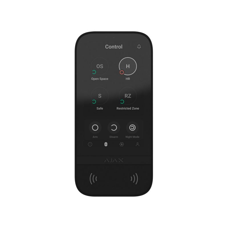 Ajax KeyPad TouchScreen — це бездротова сенсорна клавіатура з 5-дюймовим IPS-дисплеєм, призначена для керування системою безпеки Ajax. Вона дозволяє ставити та знімати охорону, активувати нічний режим, керувати сценаріями автоматизації та подавати тривожні сигнали.